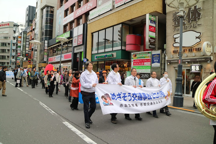今回の「交通安全のつどい」一日署長は“なでしこJAPAN代表”として活躍された澤 穂希さんです。澤さんはブラスバンド隊と一緒に赤坂の街でパレードを行いました。
