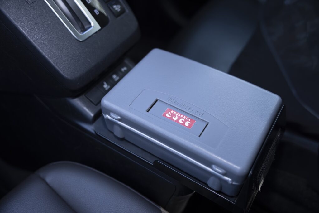 いつも持ち歩いているのは、この⼩銭⼊れですかね(笑)。家族から貰った物で、名前が⼊っているんです。ドライバーそれぞれが⾃分の使いやすい物を使⽤しているので、個性が出るところですね。あとは、このクッション。ドライバーの仕事は特性上、座っている時間が⻑くて…⾜腰の健康を守らないと、⾝体を壊してしまいます。⻑く仕事を続けるために、こうしたケアにも気を遣っているんです。