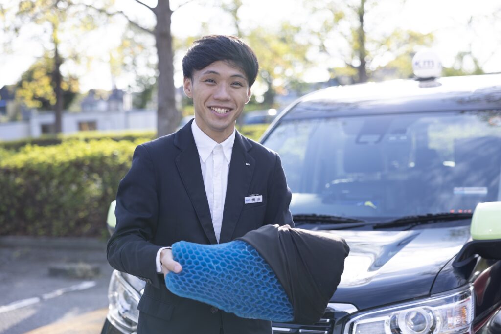kmタクシーの⾞両が⾃宅の周りを頻繁に往来しているのを見ていたため、会社自体はよく知っていました。常に気になっていたのが、「ミラクルミラー」です。kmタクシーの⾞両は、ひと際⼤きな萌黄(もえぎ)⾊のミラーが付いていますよね。車好きとして、この⼤きなミラーが運転しやすそうだと気になっていました(笑)。このような、車へのこだわりが見える点もkmタクシーの良さだと思いました︕