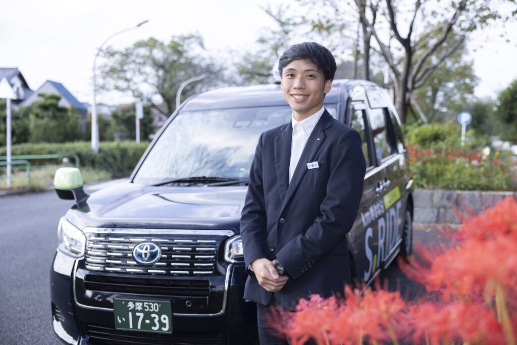 ⽗への憧れは、タクシードライバーとしてのスキルアップを⽬指すモチベーションの⼀つですね。⽗を乗せた時、「運転が上⼿い」「道を知ってる」と思わせたいですね(笑)。これが今の⽬標。⽇々、運転技術や道の知識を更新していく原動⼒となっています。そんなモチベーションを持ちながら、今後もしばらくはタクシードライバーを続ける意向です。将来的な⽬標としては、バスドライバーなど未来の可能性を思い描いています。 例えば観光バスであれば、「楽しい旅⾏気分で乗る⽅々」がお客さまとなります。そうなると、タクシーの仕事とはまた⼀味違った⼼の持ち⽅で働けると思うんです。そんな未来を⾒据えながら、今はもう少しタクシードライバーとして経験を積みたくて。都内の道を完璧に覚えるのは、なかなか時間が掛かります。⼀⼈前と⾔われるレベルまで成⻑して、次のステップへ⾏ってみたいと思います︕