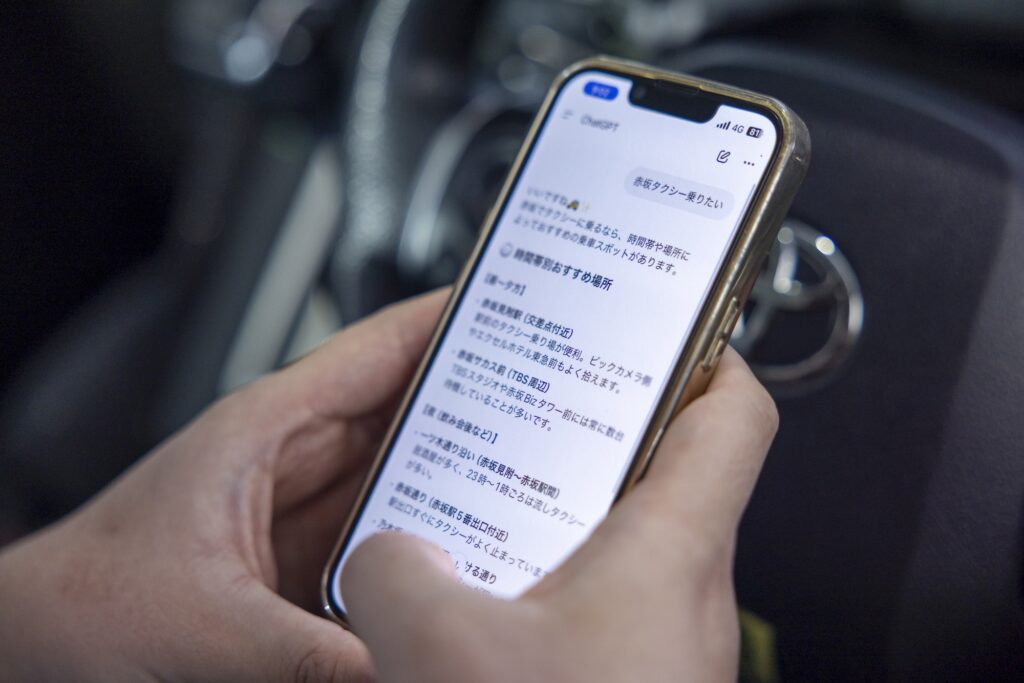 ここ最近は、「ChatGPT」を活用することが増えました!休憩時間の情報収集に使っています。「その時走っている地域の名前」と「タクシーに乗りたい」という言葉を打ち込みます。