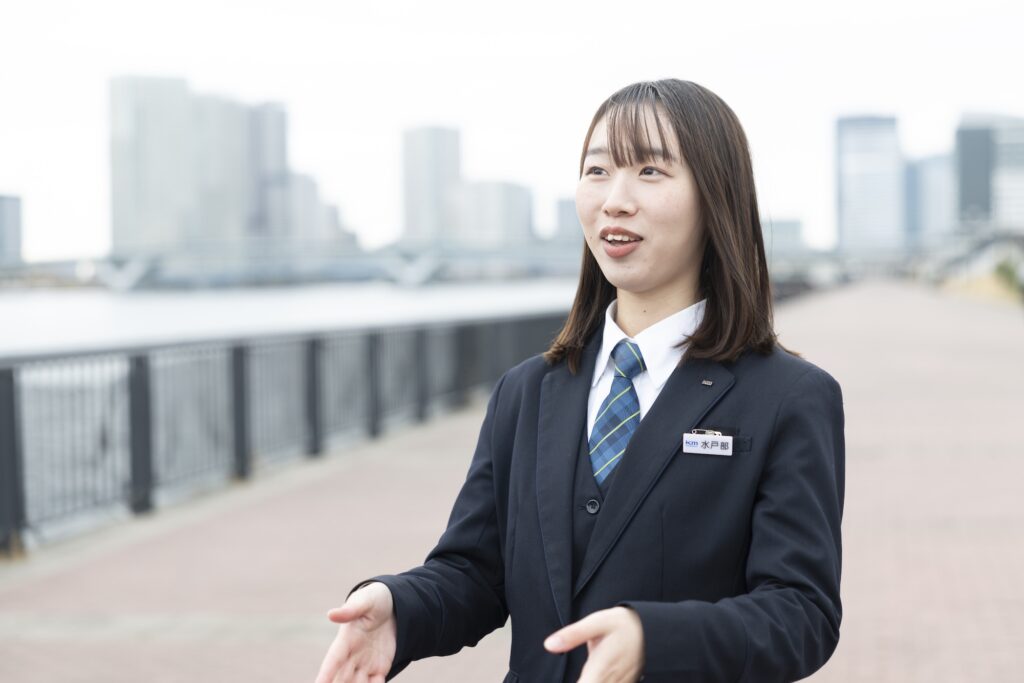 以前から漠然と「旅行や観光に関わる仕事」をしたいと思っていましたが、就活当時は国際情勢などもあって内定を得るのが難しかったんです。そんな時に出会ったのが、国際自動車(kmタクシー)でした。正直、最初は未知の「ドライバー職」への不安もありましたが、充実した研修や、内勤(総合職)へ職種変更できる制度についてお話を聞くうちに、知らない世界へ飛び込む好奇心の方が勝っていきました。退職・転職というステップを踏まず、同じ会社の中で違う仕事にチャレンジできる環境は、入社の大きな決め手になりました。