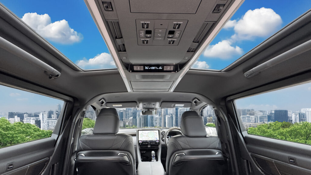 日本橋支店で今後導入する新型アルファードは、すべて「ムーンルーフ(電動開閉式のガラス製サンルーフ)」を採用。車内に自然光を取り込み、開放感とラグジュアリーさを両立した空間を提供します。役員送迎をはじめ、ホテル等を中心としたインバウンド需要にも対応し、ご乗車されるお客さまに、より快適で特別感のある移動時間をお届けいたします。